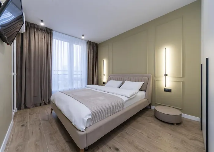 У Luxury Apartment Near Metro Station Osokorky є балкон, а також такі зручності, як система клімат-контролю. Для більшого комфорту в апартаментах є окремий туалет і душ. Крім того, ви знайдете фен, банні рушники і капці.